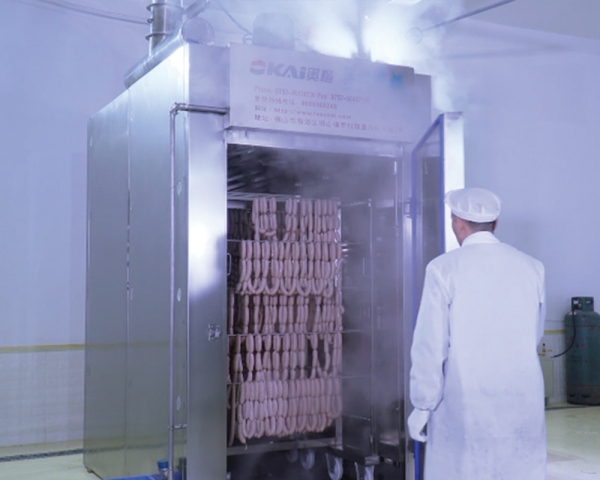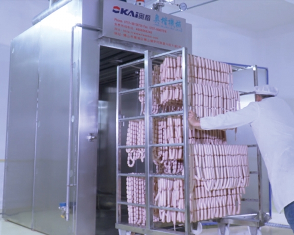 應用于香腸、培根、鴨胸、鹽焗、烘烤類休閑食品等領域,適用于小產能、多品種、多規格,且需要蒸煮、干燥、烘烤、煙熏、 清洗等功能的廠家(如香腸、臘肉、臘制品、鹽焗雞翅、烤鴨、燒鵝、烤蛋等)。