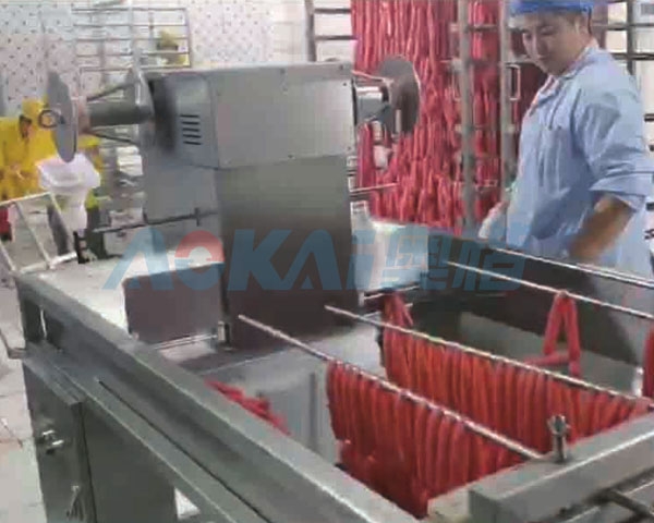 用于扎線工藝香腸拆剪,輸送代替搬運,節省8~10人拆線。It is used for cutting and transporting sausages in the tying process, replacing transportation and saving 8-10 people in dismantling the thread.